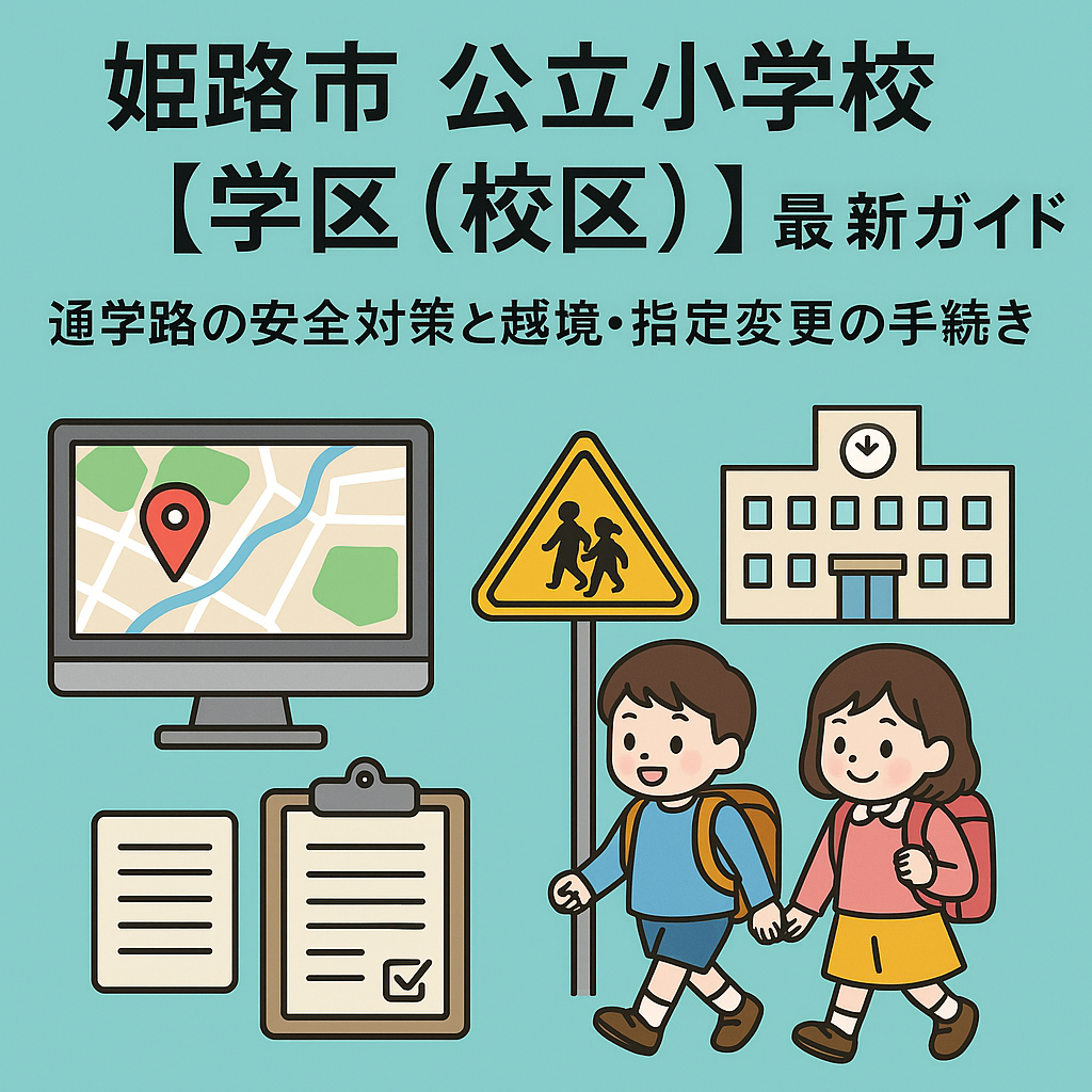 姫路市の公立小学校の学区(校区)の調べ方 と 通学路の安全対策/指定校変更(越境)制度 について、最近の公式情報をもとにまとめました。転入・マイホーム検討中のご家族にとって、住まい選びと子どもの安全を考える上で役立つ内容です。