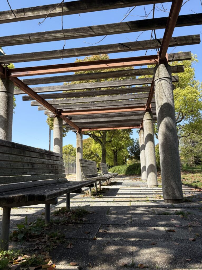 管理棟にある自動販売機は上に屋根があり日よけできますが、公園横に設置されているベンチの屋根はとても通気性を重視しており、日陰とはなりません。ただし、ベンチの横に木が植えてあるので、時間によっては木陰が出来ている場合があります。