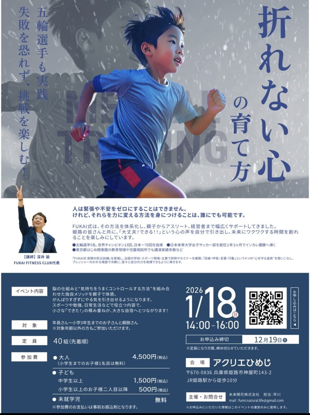 この講演会では、五輪選手も実践する「失敗を恐れず、挑戦を楽しむ」方法論に基づき、「折れない心」の育て方について学ぶことができます。