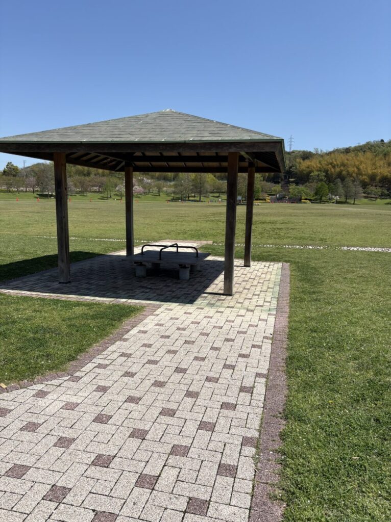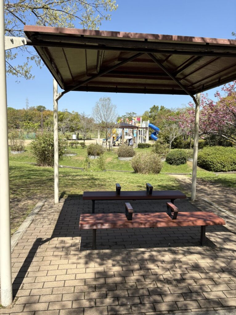 屋根付きベンチは数か所あります。この公園には屋根付きベンチのほかに大人数が座れる椅子もあり休憩所はしっかり確保されていますね!私が遊びに行った時はレジャーシートやテントを使っている人たちが多かったので、この公園ではこの屋根付きベンチを使うよりレジャーシートやテントを張って休憩する方がおすすめです!