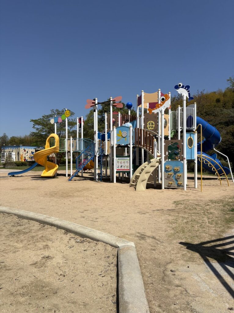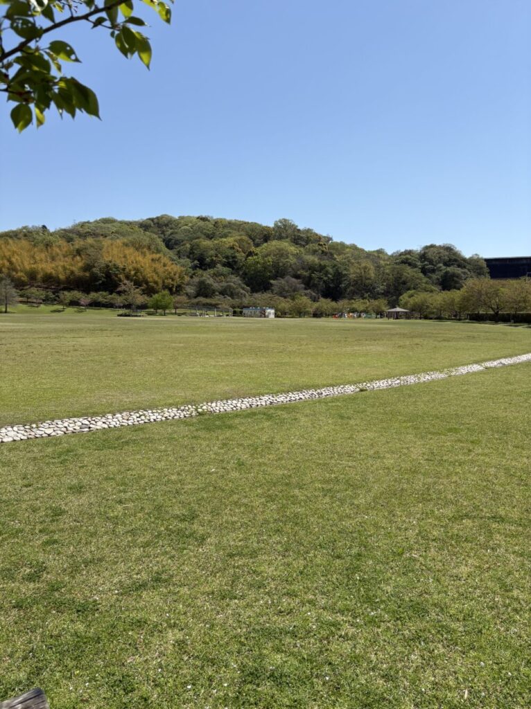 駐車場から遊具のある場所までの間は広すぎる芝生広場。ここもしかして姫路で一番広い??と思わせられるくらいの広さ。ここでどんな遊びができるかな。ボール遊び?かけっこ?ここまで広ければ何でもできそうですね!(何でもできそうだけど周りの人に迷惑かけないように注意だね笑)