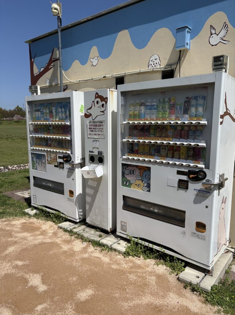 写真は遊具側の自動販売機ですが、飲み物の値段見れますか?ペットボトルのお茶100円と自動販売機では安い値段設定ですね!