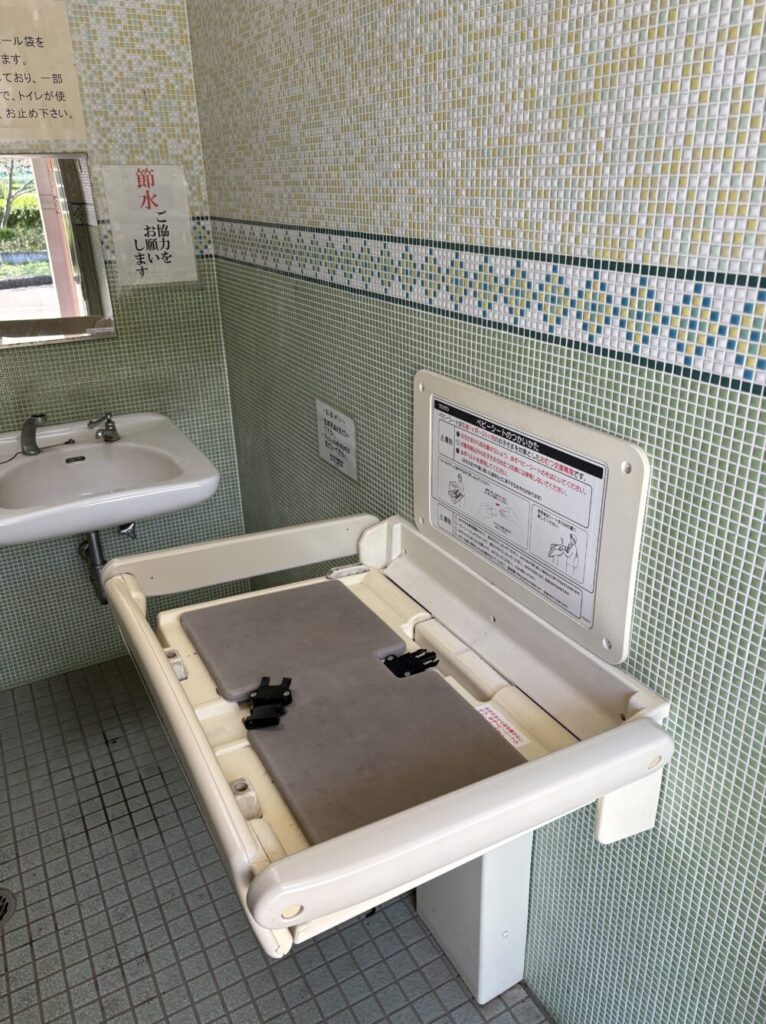 設備 ☆☆☆☆ (屋根付き休憩エリア・自動販売機・トイレあり・おむつ交換台完備)
