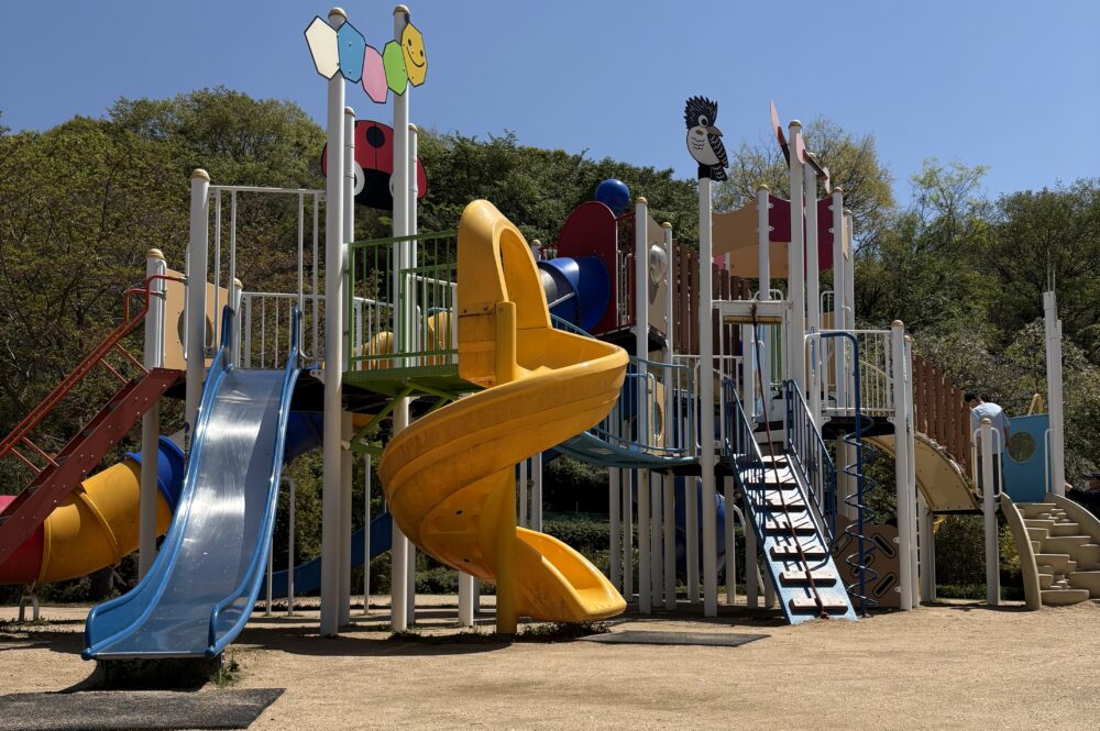 この巨大遊具は4方に違うタイプの滑り台があり、小さい子供から小学生まであっちこっち動き回り遊んでいて、私の子供はカラフルなトンネルタイプの滑り台の常連になっていました。カラフルなトンネルタイプの滑り台は傾斜が緩やかで滑るスピードもあまり出ないため安心して小さい子供も遊ぶことが出来ると感じました。