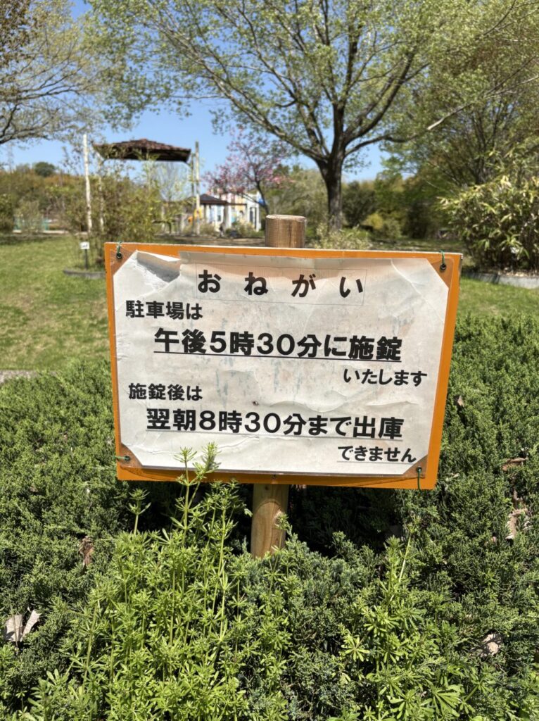 駐車場は無料。17:30分に施錠されてしまうので「駐車場から出られなくなった💦」とならないように注意してください。