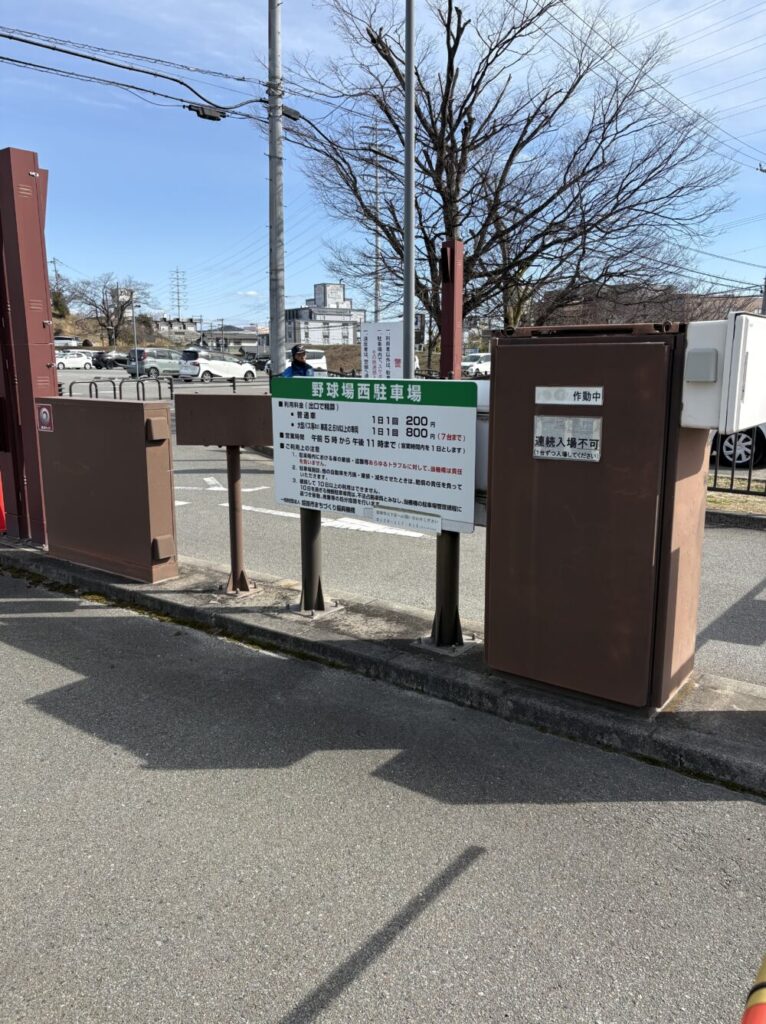 公園から一番近い駐車場は野球場西駐車場です。1回200円