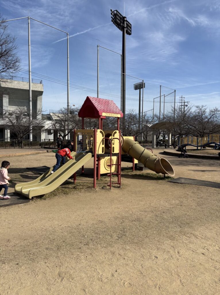 そしてこの公園の一番の特徴は陸上トラックがあることです。ウインク陸上競技場のサブトラックなので、陸上教室や走り込みをしている大人で賑わっていました。体力お化けの子供を走らせてはいかがですか?かなり体力削ること間違いなし!!